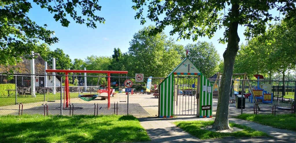 De speeltuin is ruim opgezet en voorzien van veel groen. Aan het begin van de speeltuin vind je het kleuterplein met speeltoestellen voor de jongere kinderen en de schommels. Ook vind je hier de picknicktafels en de ingang naar het terras van onze buren Pannenkoekenhuis De Hoge Neer voor een lekker kopje koffie of een pannenkoek.